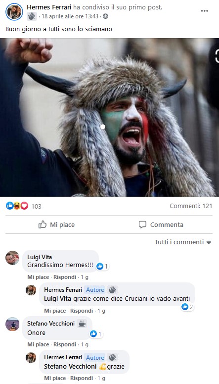 👉 A distanza di due mesi, lo sciamano Hermes Ferrari tornerà ad essere protagonista delle cronache. Si veda: