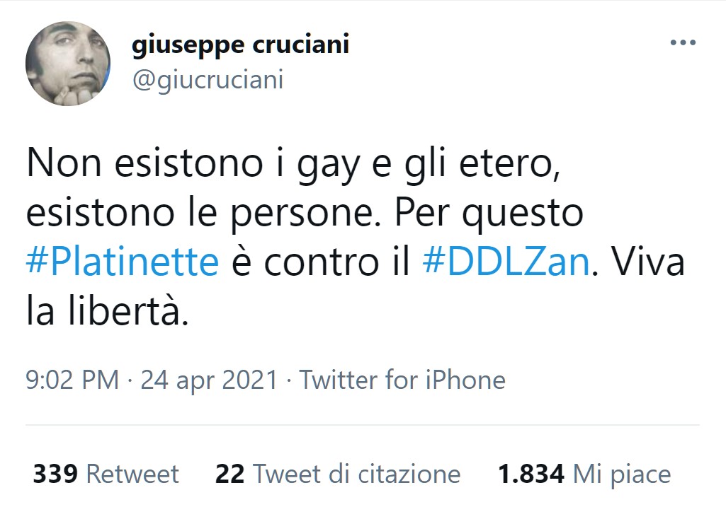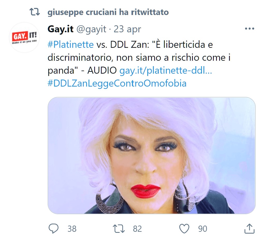 Fermi tutti: Platinette, al secolo Mauro Coruzzi è contrario all'approvazione del disegno di legge Zan.