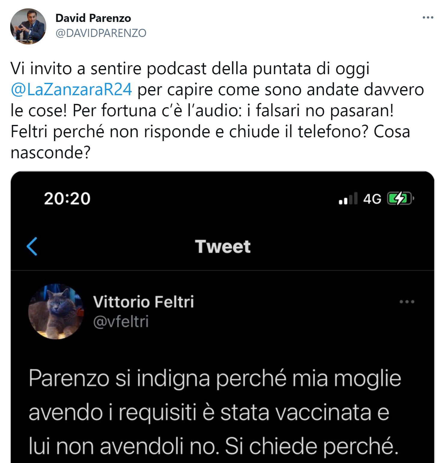 Dalla diretta video de #LaZanzara (Radio 24) del 16 aprile 2021